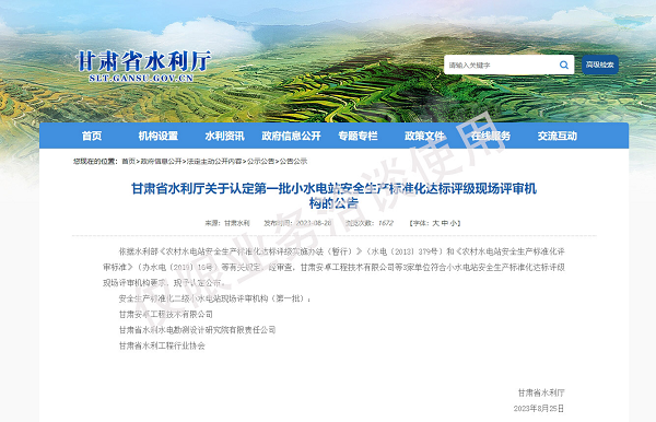 甘肅省安全生產標準化二級小水電站現場評審機構
