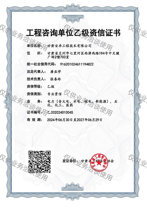 工程咨詢單位乙級資信證書