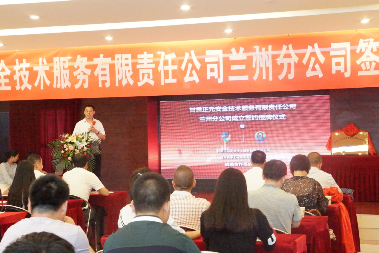 8月17日(周四)下午“甘肅正元安全技術(shù)服務(wù)有限責(zé)任公司蘭州分公司成立簽約授牌儀式暨甘肅正元安全技術(shù)服務(wù)有限責(zé)任公司與甘肅安卓工程技術(shù)有限公司戰(zhàn)略合作簽約儀式”在蘭州市亞歐大酒店隆重舉行。